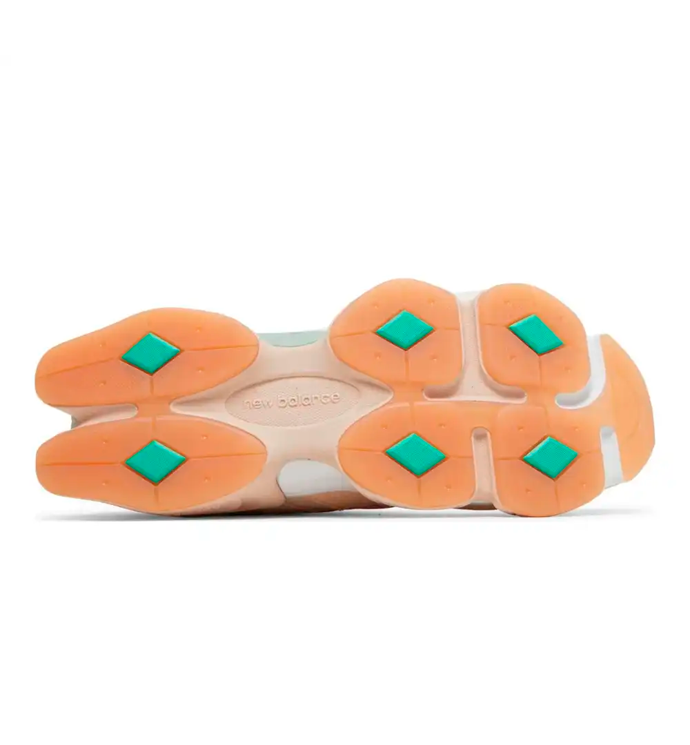 Inspirado na estética futurista o tênis 9060 da New Balance reúne elementos dos icônicos modelos 99X. A silhueta aplica as barras de balanço na parte superior, enquanto o logotipo da língua faz referência à joia de renda 991 original. Sob os pés, a entressola esculpida apresenta amortecimento ABZORB, ENCAP e SBS.